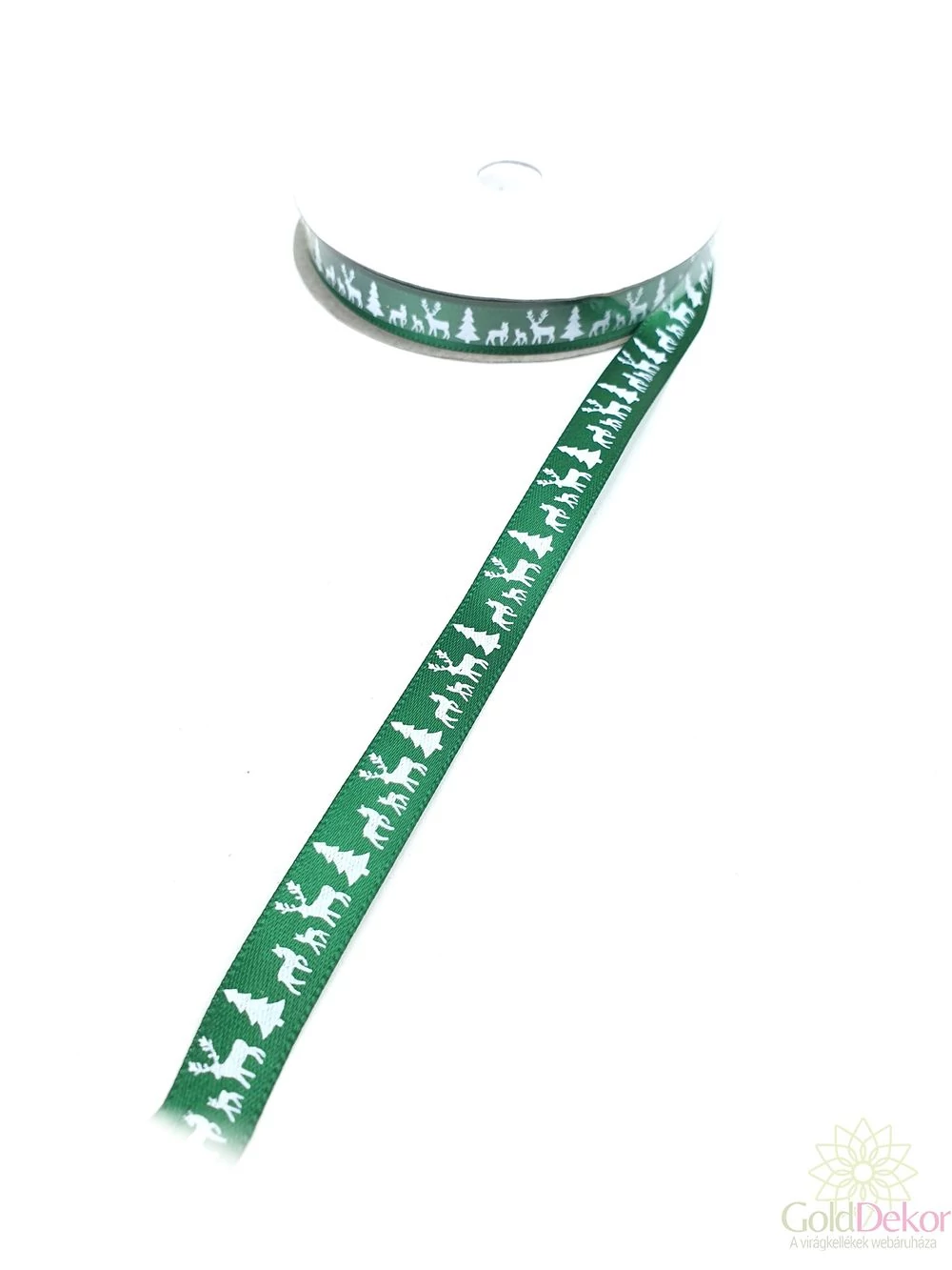 Manó mintás karácsonyi szatén szalag - Sötét zöld