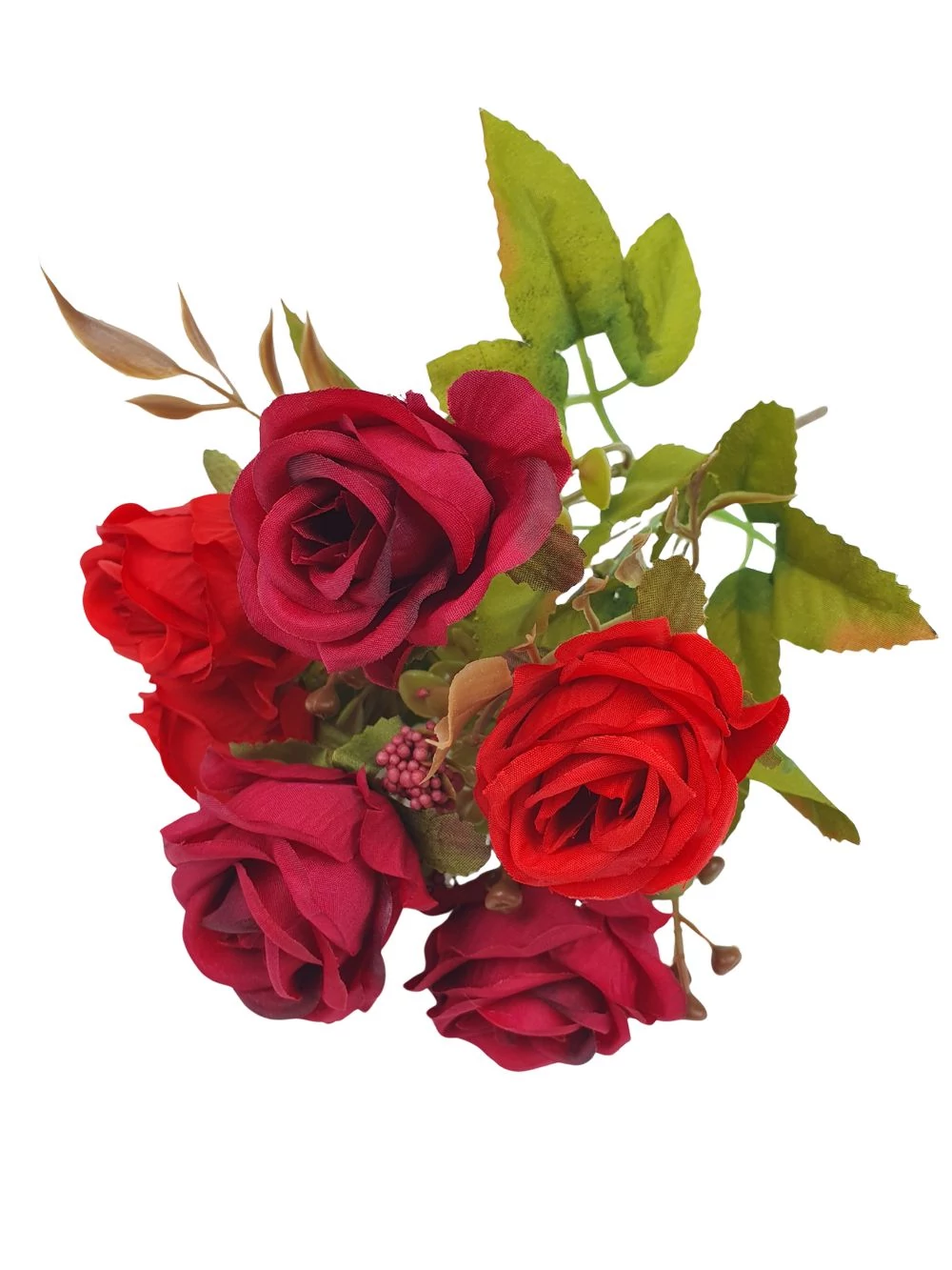 6 fejes rózsa csokor antik zöld kiegészítővel - Piros