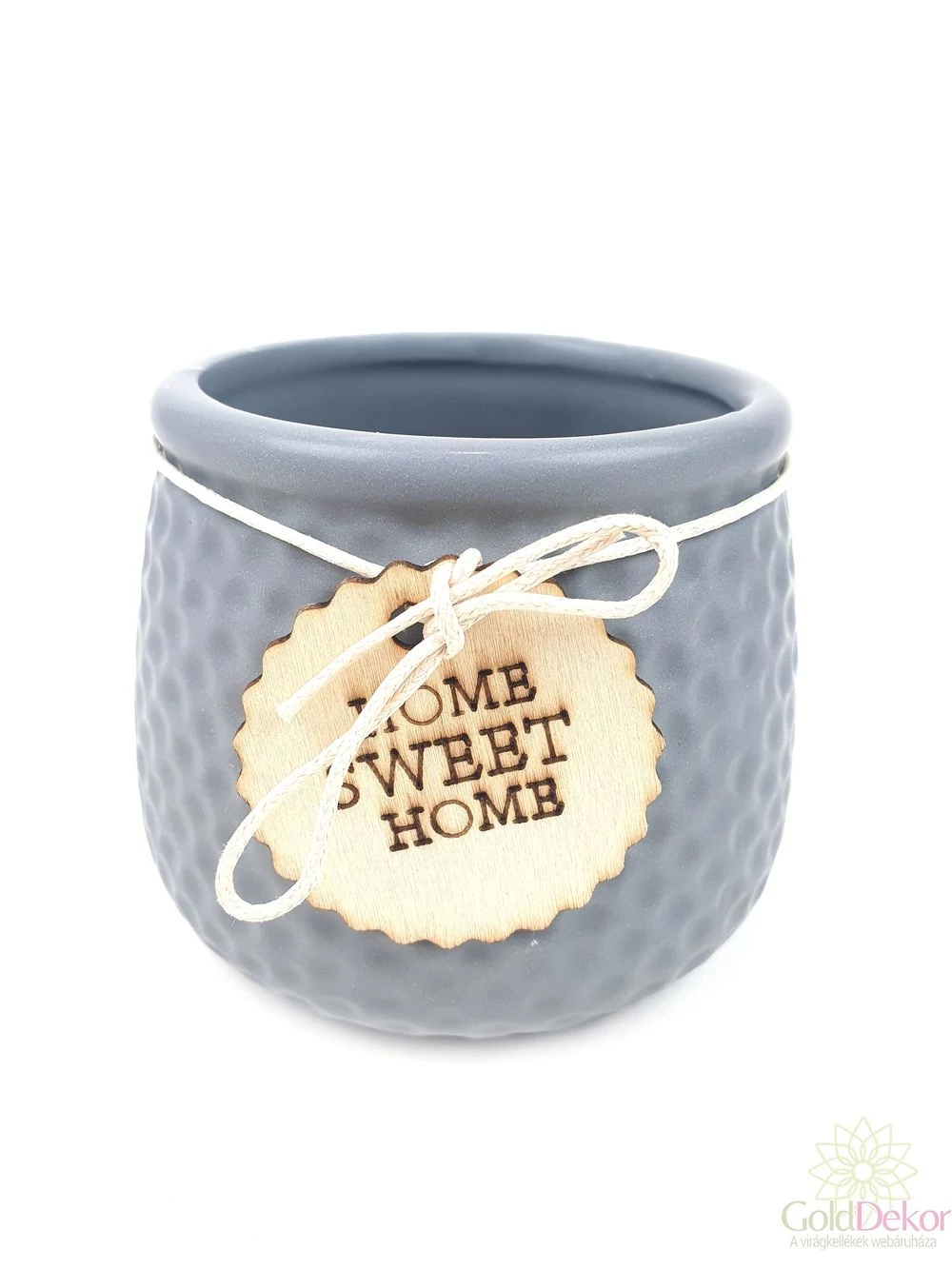 Fa cimkés Home Sweet Home kaspó - Szürke