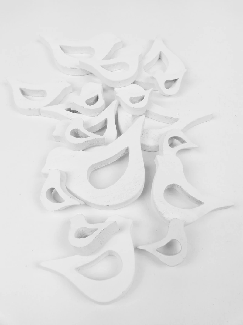 A csomag 4 db nagy(8*5,5cm) 6 db közepes (5,5*4cm), kicsi 8 db (3*2) madarat tartalmaz.