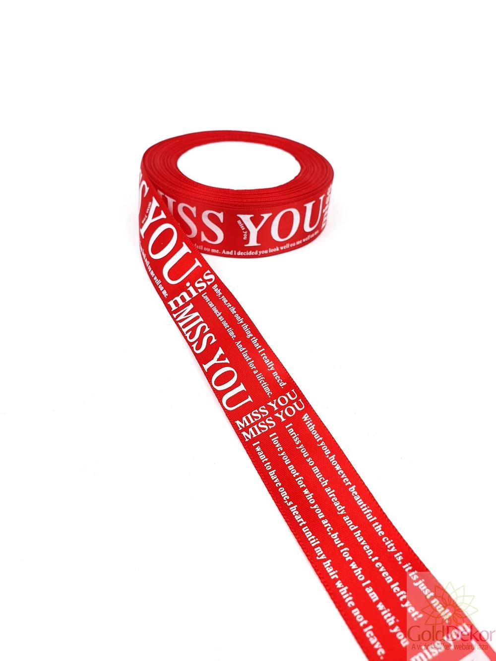 Feliratos szatén szalag MISS YOU - Piros
