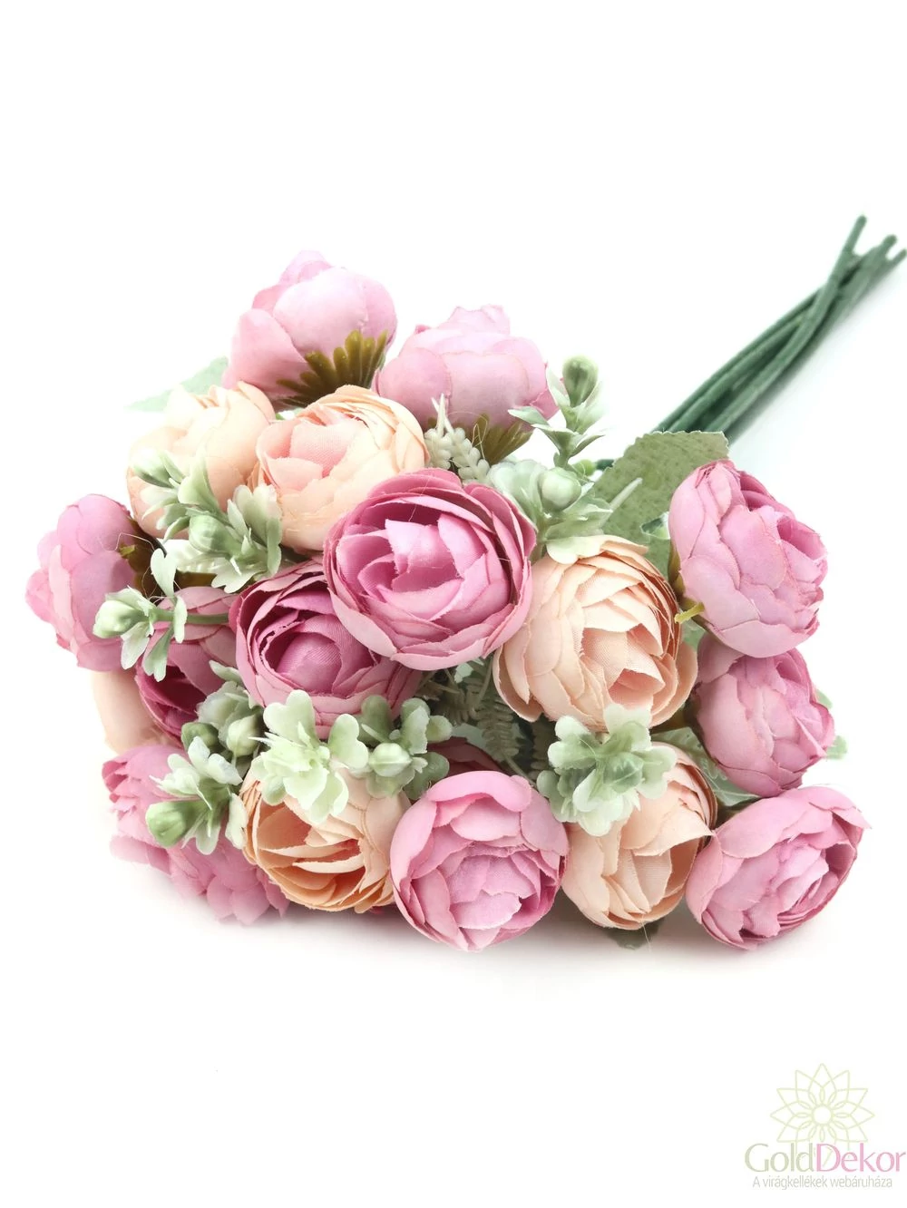 Hamvaslevelű dekor boglárka csokor - Rózsaszín