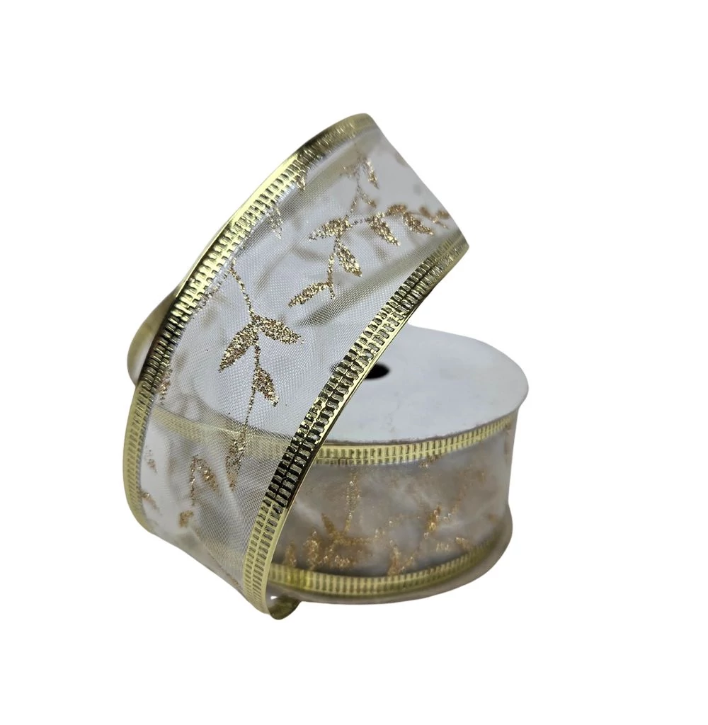 Karácsonyi organza szalag aranyszélű - Arany mintával