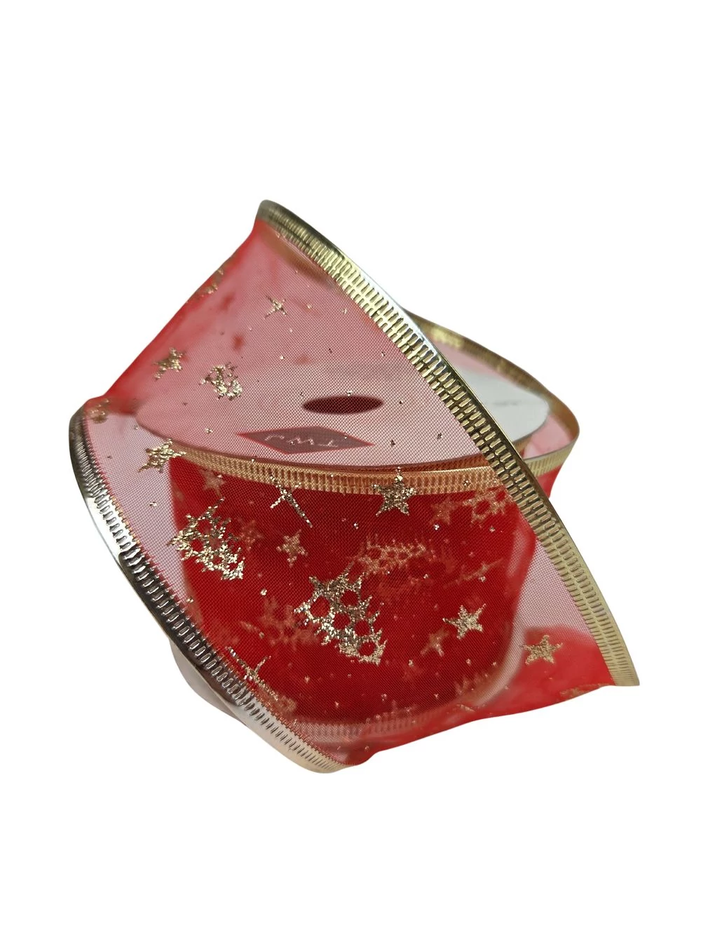 Karácsonyi organza szalag aranyszélű - Piros arany fenyővel