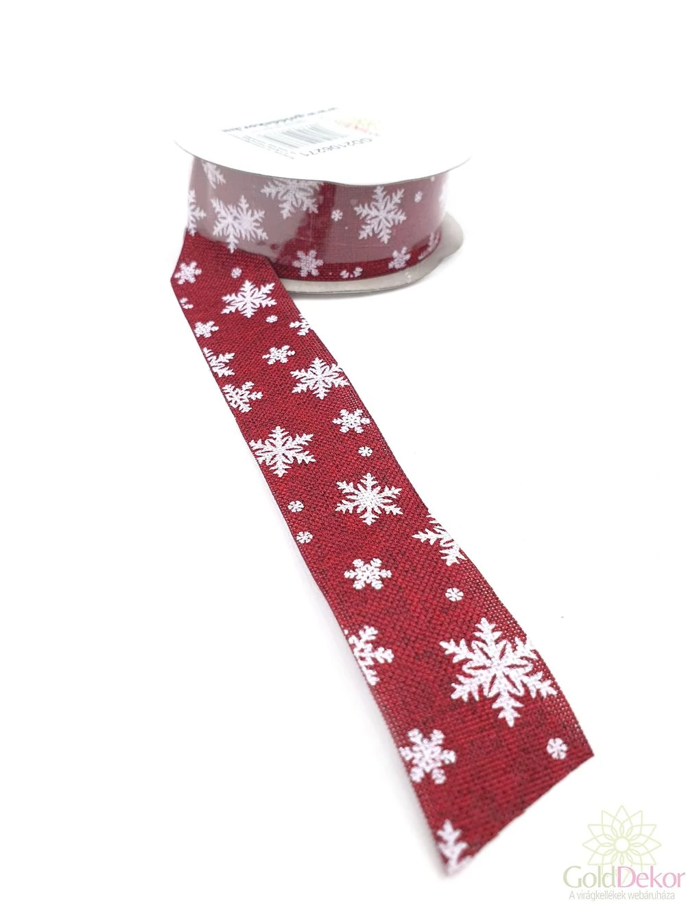 Hópehely mintás juta szalag 2,5 cm - Bordó