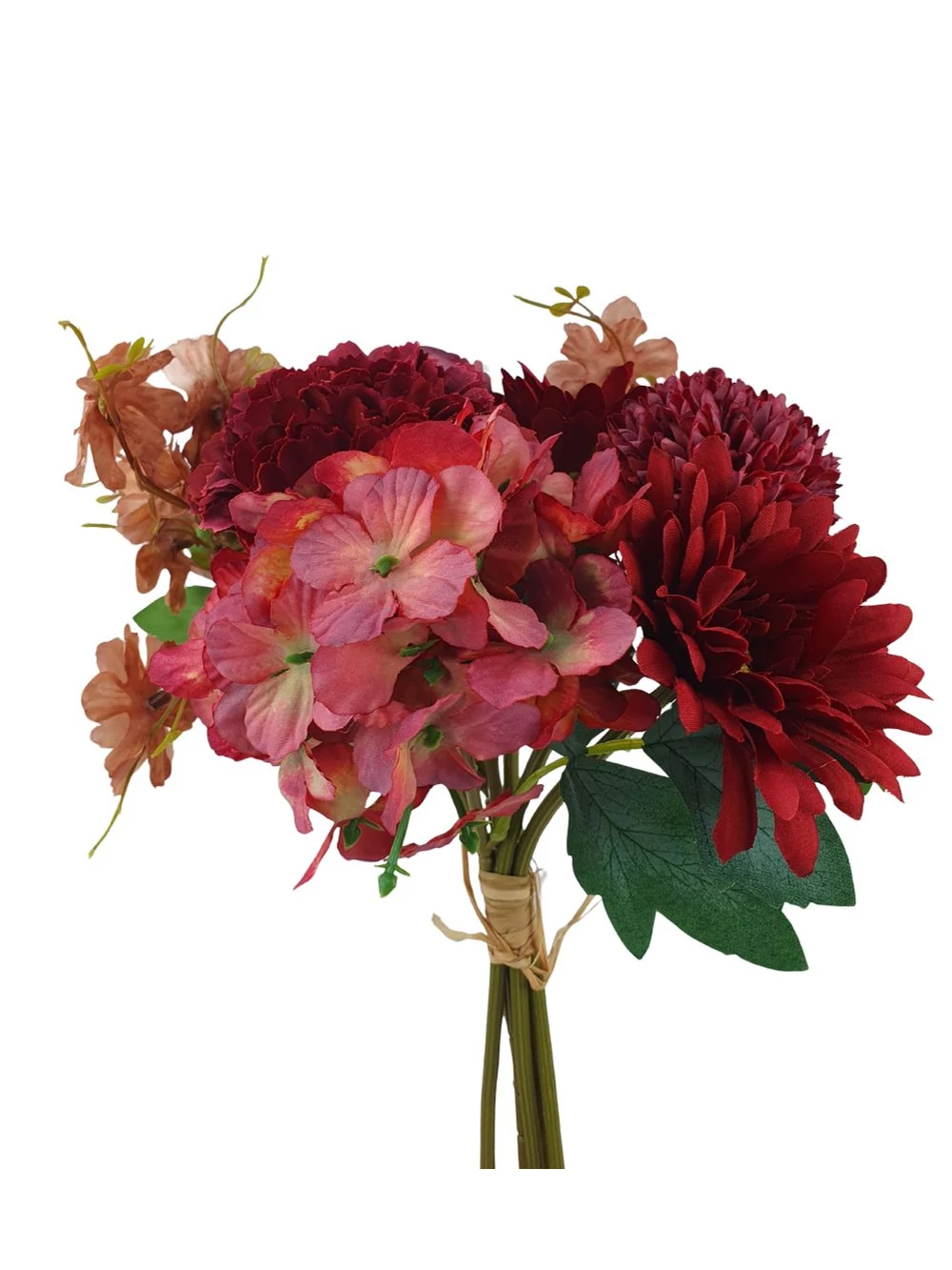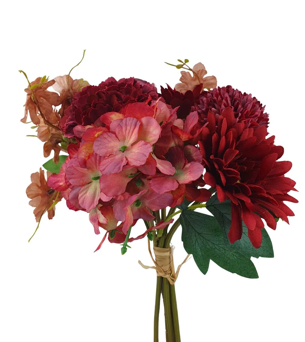 kb.31 cm hosszú, 3 szál/köteg, 2 szál gerbera+1 szál krizi+1 szál hortenzia+1 szál szegfű+1 szál boglárka +kiegészítő van össze kötegelve, szét is szedhető